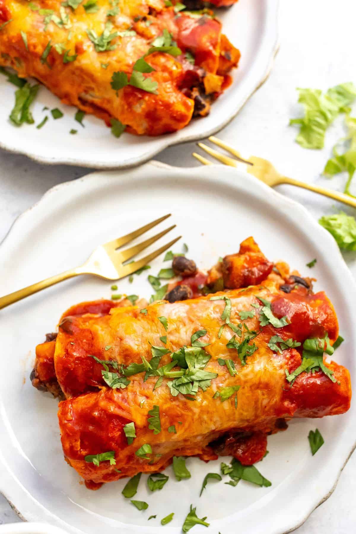 These Chipotle Butternut Squash Enchiladas are hands down the best vegetarian enchilada out there. Smoky spiced flavors from the chipotle married with sweet earthy butternut squash make for a flavor combination you will love. They come together quickly, heat up well as leftovers and are all around a comfort meal without the guilt.