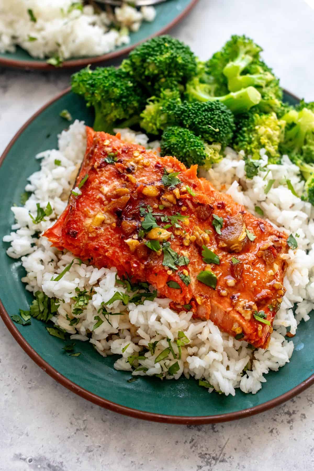 This was sooo good!! Asian flavor is amazing and it has just the right amount of spice. Having air fried or roasted broccoli with it is a must – the broccoli in the sauce is almost as good as the salmon!