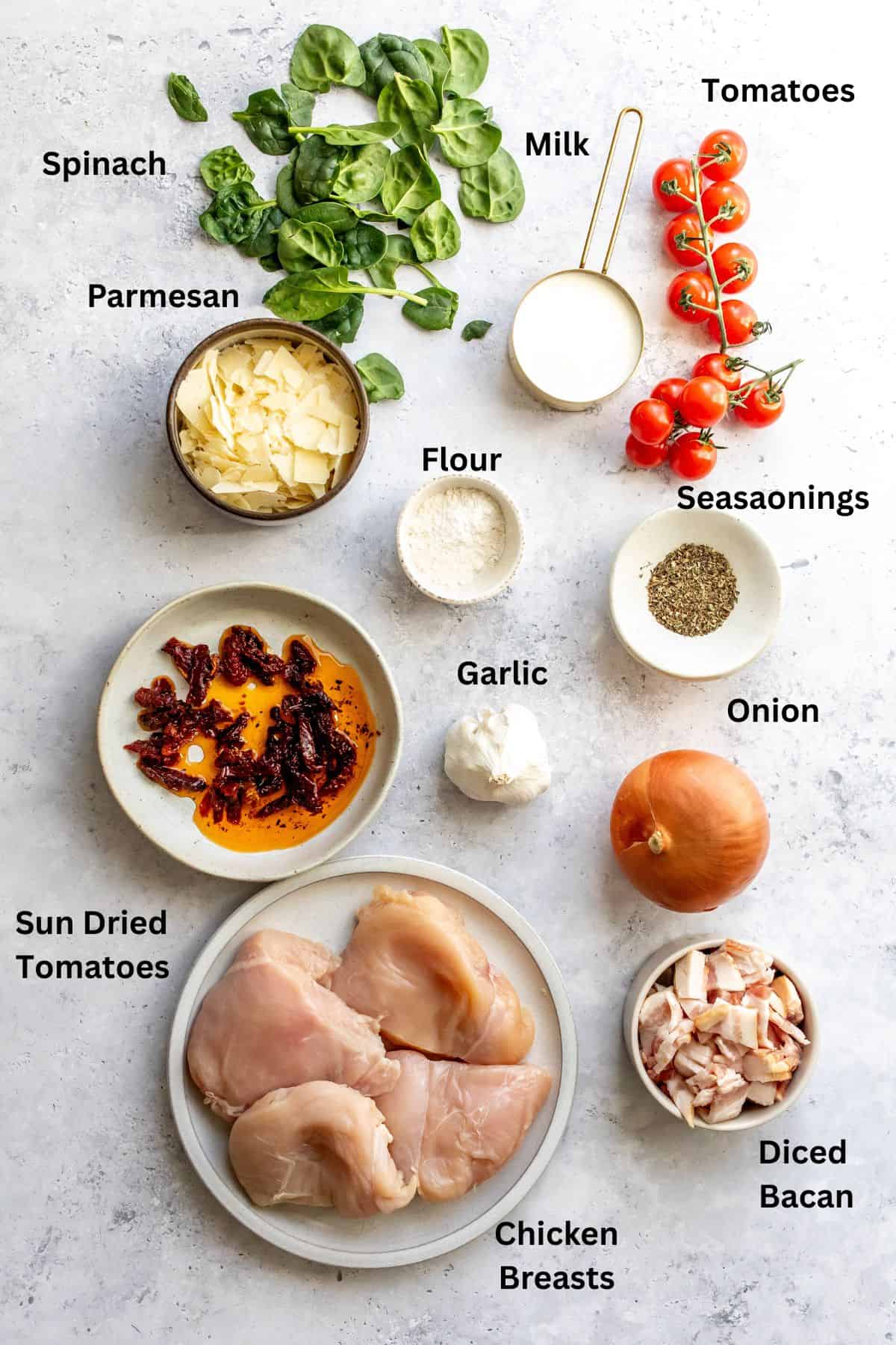 - Sun Dried Tomatoes In Oil. These can be found in the condiment aisle at the store. They add a huge flavor to the dish.